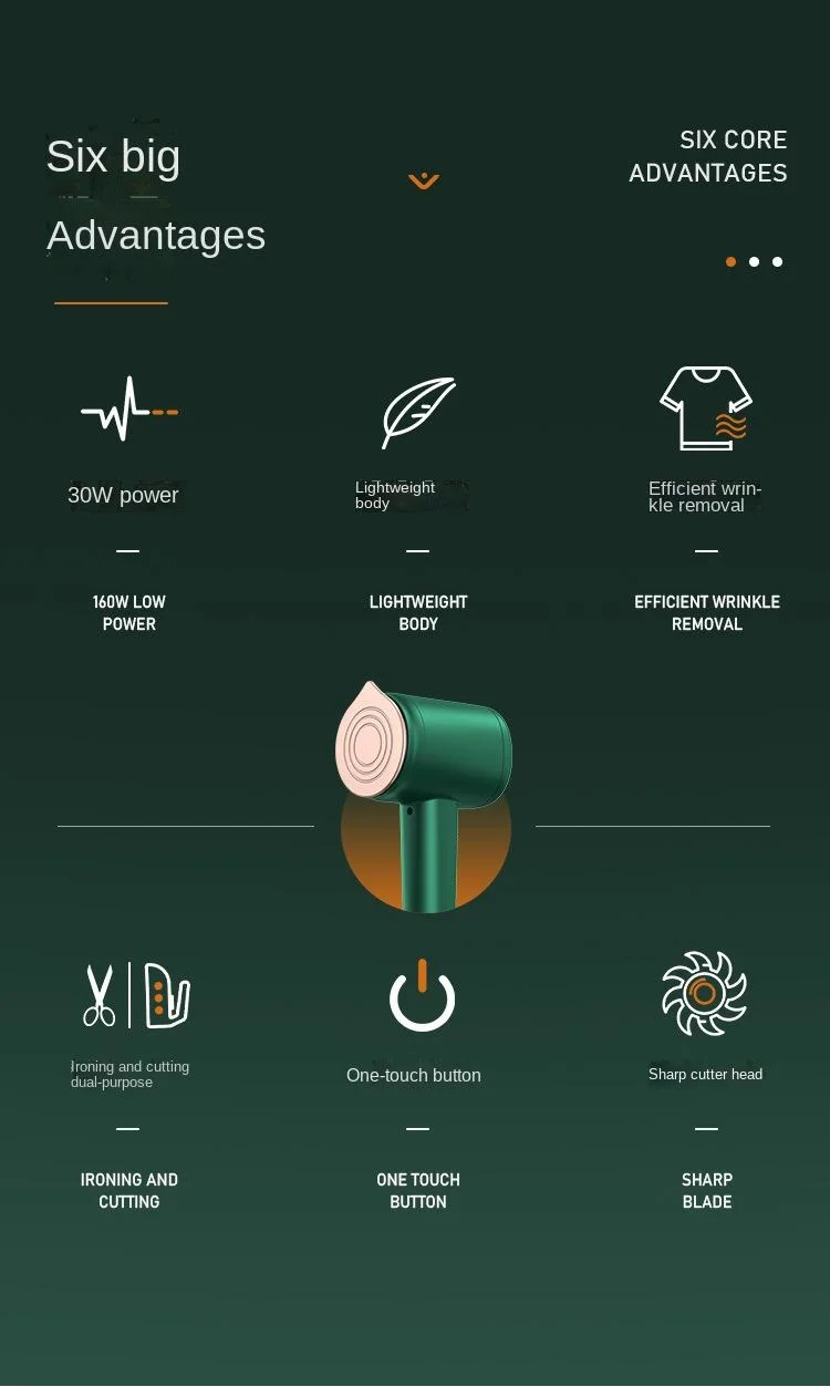 1. Il s'agit d'une machine à repasser et de découpe portative, d'une tondeuse à boules de poils intégrée multifonctionnelle pour le repassage et la coupe, d'une petite machine à repasser et à cisailler domestique et de voyage.